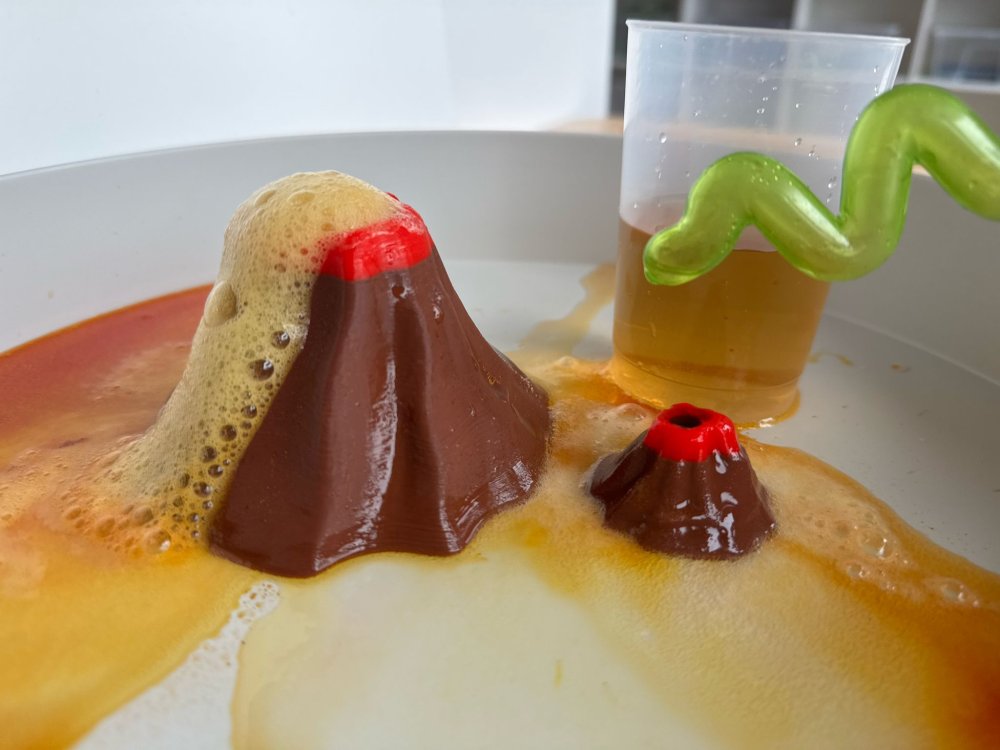 V hlavní roli dnes máme 3D tištěnou sopku s otvorem na tento pokus, která není jen krásnou dekorací, ale také vědeckým nástrojem pro tenhle malý experiment!